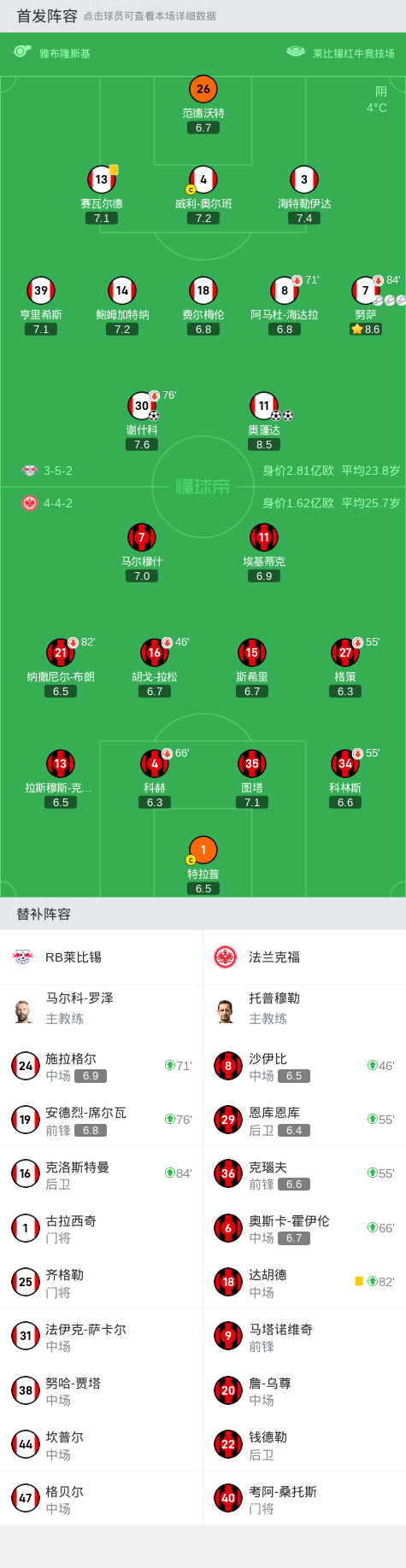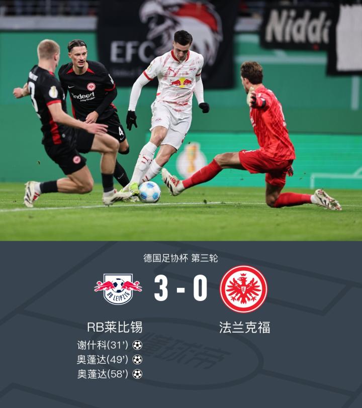 虽然法兰克福在比赛中也有几次射门机会,但是由于莱比锡的防守表现出色,这些进攻都被化解。随着比赛进入尾声,法兰克福多次传中皮球,但都未能造成威胁,最终让莱比锡凭借着3-0的比分成功晋级到八强。